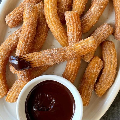 Four light and fluffy churros fried golden brown and rolled in cinnamon sugar. Served with dulce du leche.
