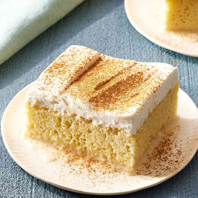 Traditional airy sponge cake soaked in three sweetened milks.