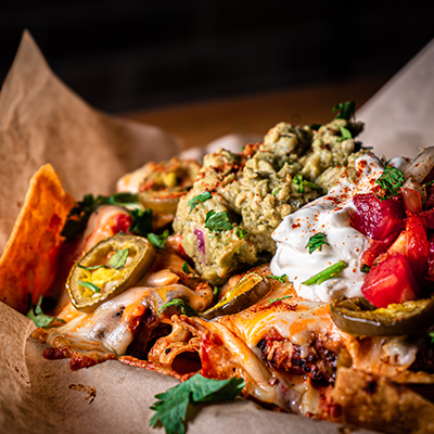 House cheese sauce, three cheese bleng topped with pickled jalapenos, house spice and cilantro, Served with sour cream and pico de gallo. ( add chicken - 5 | porco asado - 5 )